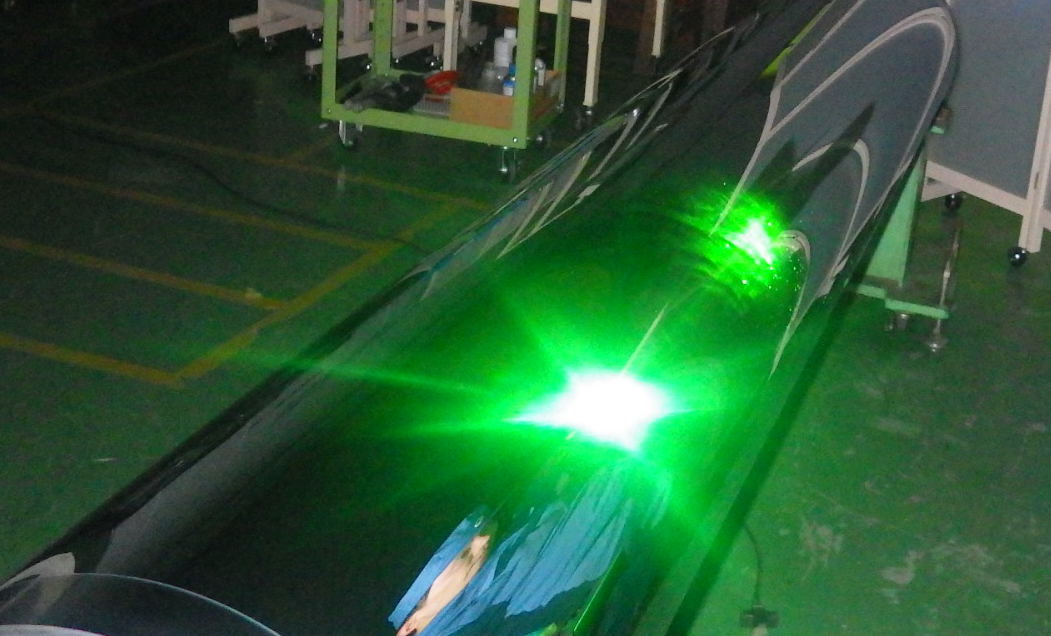 仕上げ後ライトアップによる目視検査(特殊光源検査)にて研磨痕の有無を確認します。