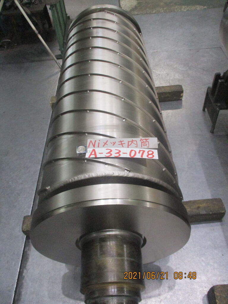 上記は鉄材に無電解ニッケルめっきを施工した内筒の写真です。膜厚15μ施工しています。