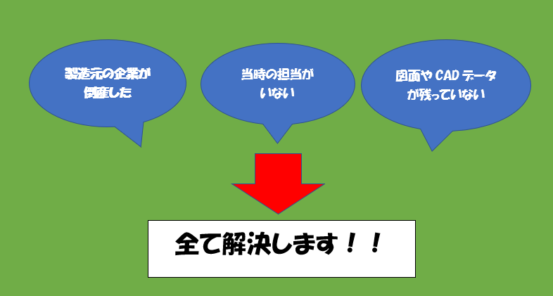 「製造元の企業が倒産してしまったので図面の入手はおろか新規製作の依頼ができない。」