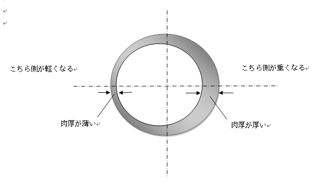 まず、バランスとは何かというと、たとえば下記ロールの断面図のようにパイプ肉厚に偏肉がある場合に、重量の不釣り合いが発生します。